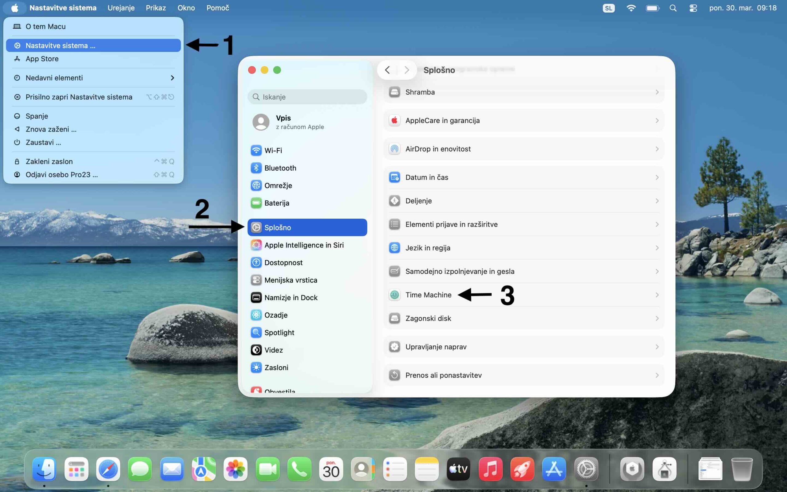 - Kliknite na “Jabuček” () meni in izberite System Preferences.